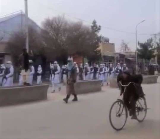 Copyright – Capture vidéo – Des Talibans qui défilent dans les rues de Kaboul harnachées avec des gilets remplis d’explosifs pour instiller la peur à la population