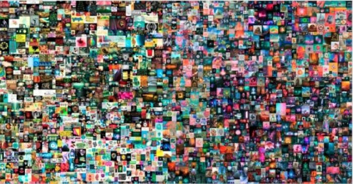 L’affiche « Everyday: the first five thousand days » de Beeple, vendue en NFT, est en accès libre sur Internet. L’utiliser ne pose pas de problème mais une seule personne peut revendiquer de posséder l’original : l’acheteur du NFT – capture d’écran