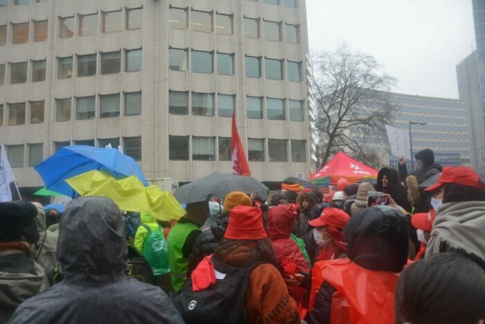 En tendant l’oreille et en discutant avec les gens, on se rend bien vite compte qu’ils viennent de tous les corps de métiers du milieu scolaire. Parmi les drapeaux rouges, verts et bleu, on aperçoit même des étudiants portant un panneau expliquant leur présence : « Solidarité avec nos enseignants ».