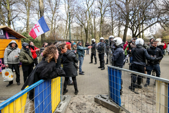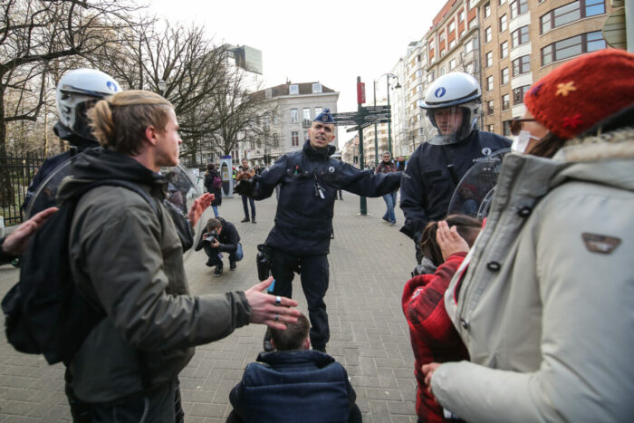 Ils étaient un peu plus de 200 sur le parking C du Heysel. Quelques maigres manifestations statiques se sont également tenues au Cinquantenaire et dans le quartier des quais près de la place Sainte-Catherine. Devant les institutions européennes, Rond-point Schuman, une poignée de participants ont tenté de sortir du périmètre imposé par la police. Ils ont été immédiatement refoulés.