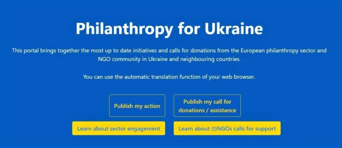 Le portail PhilanthropyForUkraine.eu rassemble les initiatives et les appels aux dons les plus récents du secteur philanthropique européen et de la communauté des ONG en Ukraine et dans les pays voisins.