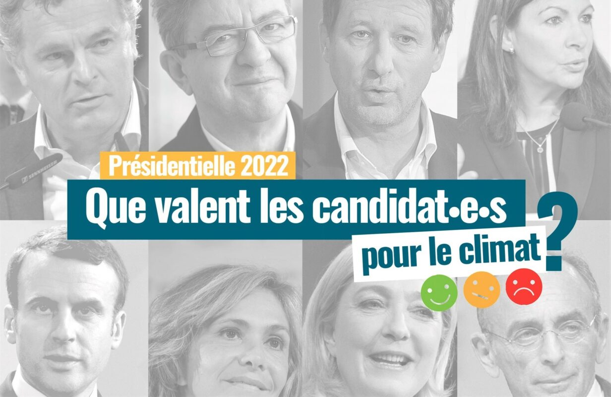 Dans le cadre de l'élection présidentielle, le Réseau Action Climat note l'ambition des mesures proposées par chaque candidat pour le climat. Transports, Agriculture, Logements, Energie, International, Industrie, Finances Publiques, que valent les programmes ? A l’exception de la crise énergétique, l’écologie est largement passée sous silence dans cette campagne présidentielle. L’urgence climatique et l’effondrement de la biodiversité sont largement absents du débat politique.