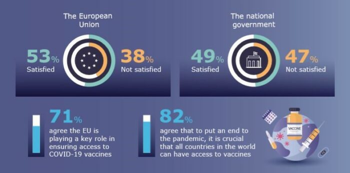 « La stratégie européenne en matière de vaccins est un succès historique. Avec plus de 70 % de personnes entièrement vaccinées et plus de 50 % de l’UE ayant reçu une dose de rappel, nous avons bien progressé », a tweeté Stella Kyriakides, la commissaire européenne à la santé et à la politique des consommateurs, en partageant les résultats du sondage Eurobaromètre sur les réseaux sociaux.