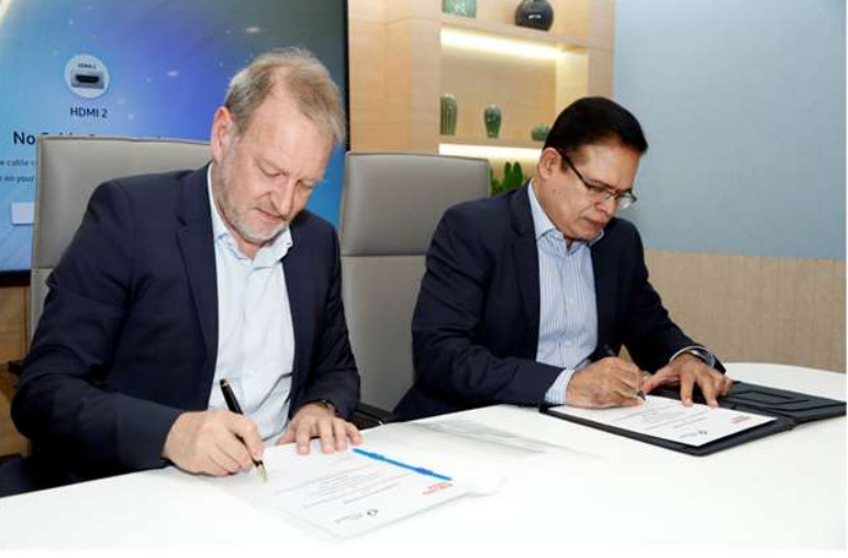India (à droite) signant le contrat lors d’une cérémonie officielle à Mumbai en Inde – Copyright Cockerill Industry