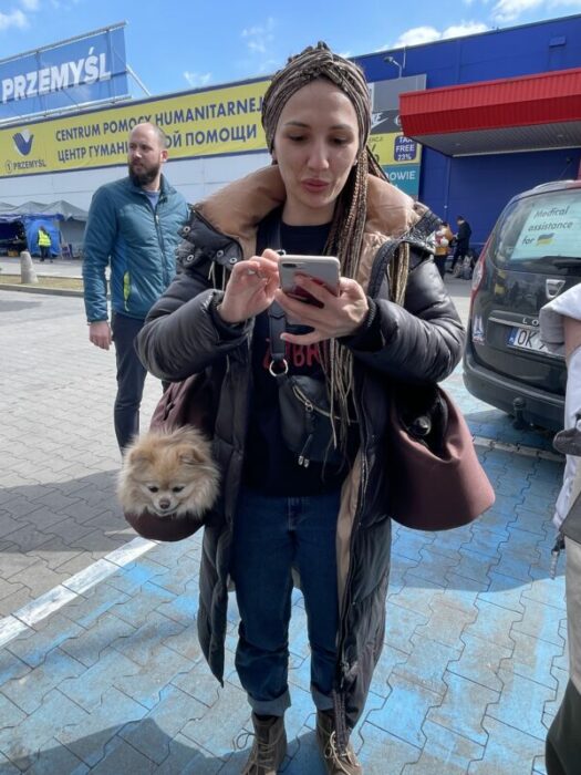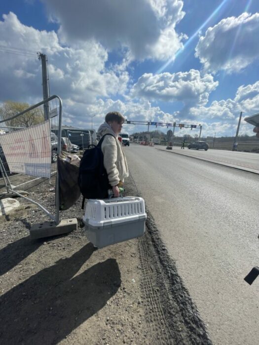 Tatiana a 17 ans, elle vient de Lviv. Lorgnant le poste frontière, une boite vide à la main, un sac au dos, elle souhaite aller rechercher son chat, laissé chez un habitant non loin. Elle cherche des réponses. « Vous pensez que j’oserai passer à pied ? Pourrais-je revenir ici ? Je veux me rendre aux Pays-Bas, chez une cousine », explique-t-elle. L’espace d’une seconde, elle prend son courage à deux mains et disparait là-bas, derrière la barrière et le drapeau bleu et jaune flottant dans le ciel bleu. On ne la reverra pas. Qui sait si elle a pu repasser de l’autre côté ?