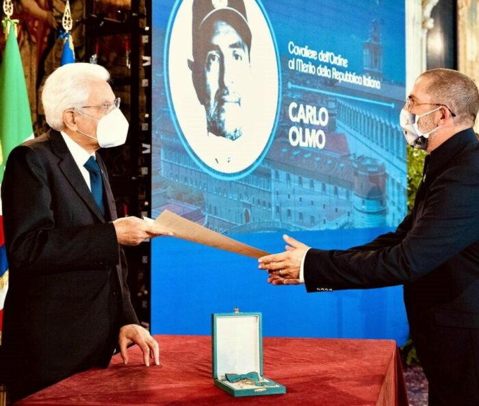 C’est grâce à ces différentes actions humanitaires et de bienfaisance, que Carlo Olmo a attiré l’attention de Sergio Mattarella. En octobre 2020, le Président de la République lui a conféré le titre officiel de Chevalier de la République italienne.