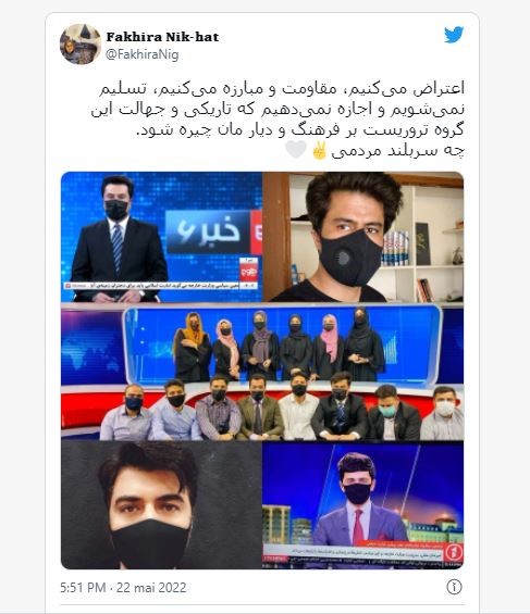 Depuis le 9 mai dernier, le gouvernement taliban oblige les femmes afghanes à se couvrir le visage dans l’espace public et même d’éviter de sortir. Restriction supplémentaire, le 21 mai suivant, le ministère de la Promotion de la vertu et de la prévention du vice a ordonné à toutes les présentatrices de télévision de porter le voile intégral, déclarant qu’il s’agissait d’ « une décision finale et non ouverte à une discussion ». Aujourd’hui, les femmes journalistes doivent se couvrir le visage pour présenter les journaux sur les chaînes télévisées du pays, TOLOnews, Ariana Television, Shamshad TV et 1TV.