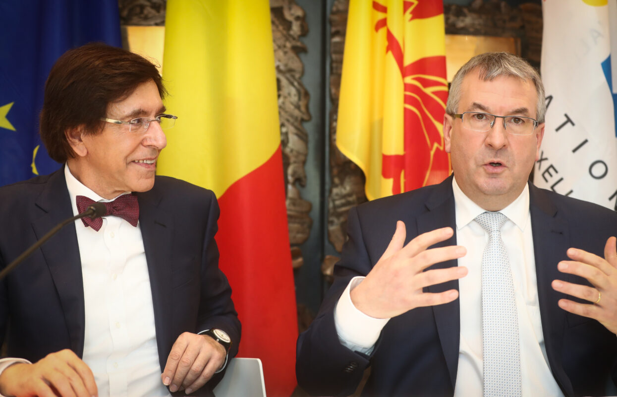 La suppression des Agents de Liaison Académique et Culturelle/ALAC portée par Elio Di Rupo (PS, à gauche sur la photo) et Pierre-Yves Jeholet (MR, à droite) suscite la colère des écrivains. BELGA