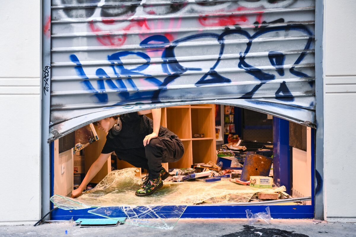Un employé entre dans un magasin pillé à la suite d'une quatrième nuit consécutive d'émeutes en France déclenchées par la mort du conducteur adolescent Nahel par une balle de la police, à Lyon, dans le sud-est de la France, le 1er juillet 2023. AFP Si les violences ont été territorialement moins étendues, dans la nuit de vendredi à samedi, elles sont restées d’une intensité exceptionnelle. Avec, entre autres, le pillage d’une armurerie à Marseille. Ce samedi après-midi, alors que le ministre de la Justice, Eric Dupond-Moretti martelait que les parents « doivent tenir leurs gosses », et que le président de la République, Emmanuel Macron, annulait une visite d’Etat en Allemagne (dont le clinquant des aspects protocolaires, forcément spectaculaires, auraient été mal compris alors que la France brûle), le jeune Nahel était inhumé au cimetière du Mont-Valérien. Et chacun retenait son souffle dans l’attente d’un week-end jugé par beaucoup comme décisif. En attendant, les chiffres donnent un aperçu de l’intensité des violences et du climat tendu qui règne dans l’Hexagone.