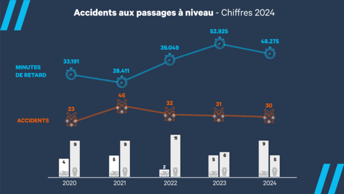 Les principaux enseignements que l’on peut tirer des statistiques de l’année écoulée sont les suivants : le nombre de victimes reste élevé (5 morts et 9 blessés graves en 2024 contre 6 morts et 5 blessés graves en 2023) ; 30% de ces accidents se sont produits en novembre et décembre ; 60% des accidents trouvent leur origine dans le franchissement délibéré (d’un véhicule ou d’un piéton) du passage à niveau alors que les feux sont rouges et que les barrières baissées. Dernier constat interpellant : les personnes impliquées dans un accident restent, dans une majorité de cas, des riverains… attestant que c’est l’habitude qui mène le plus souvent à un accident et non la méconnaissance des lieux.