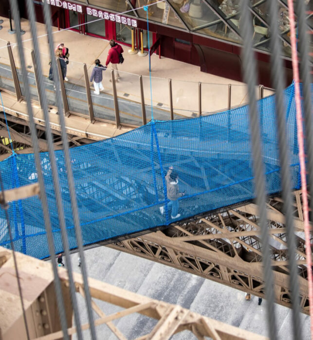 La passerelle, réalisée en filets par la société spécialisée Arboricorde, offre une expérience vertigineuse dans des conditions de sécurité maximales sur un pont qui se veut être le plus haut pont urbain de France. Rendez-vous au 1er étage de la tour Eiffel pour une expérience inédite, riche en sensations.