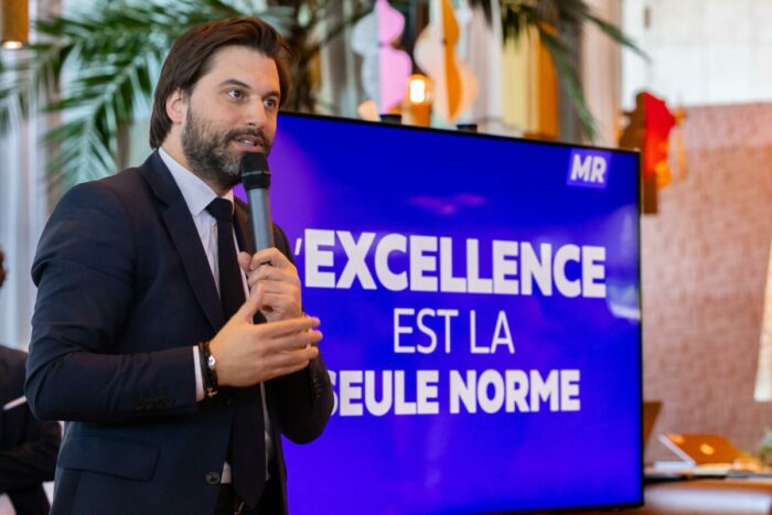 Après un premier report, c’est dans l’ancien immeuble historique de la Royale Belge, au deuxième étage (espace MIX), que le président du MR, Georges-Louis Bouchez, a convié, ce mardi 18 mars, les journalistes pour présenter ses vœux à la presse nationale autour d’un « walking dinner ». L’occasion pour le trublion de la politique belge de revenir sur plusieurs points importants pour les libéraux présents dans les majorités au niveau fédéral, en Région wallonne et à la Fédération Wallonie-Bruxelles.
