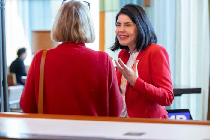 La ministre francophone de l’Education et de l’Enseignement de promotion sociale, Valérie Glatigny, en discussion. Crédit: Nathalie Bidoul.