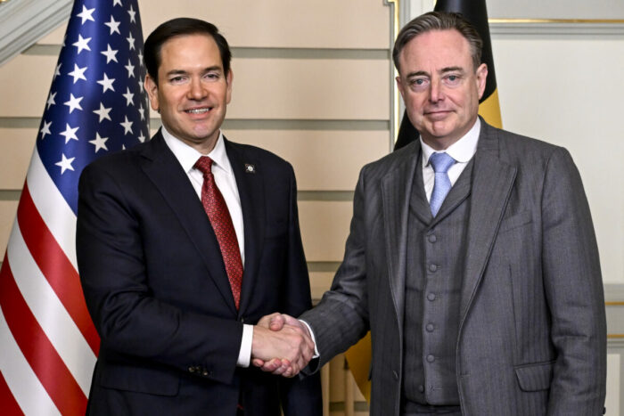 BELGA Le secrétaire d’État américain Marco Rubio et le Premier ministre belge Bart De Wever photographiés lors d’une réunion entre le Premier ministre belge et le secrétaire d’État américain, à Bruxelles, le vendredi 4 avril 2025. (BELGA PHOTO DIRK WAEM).
