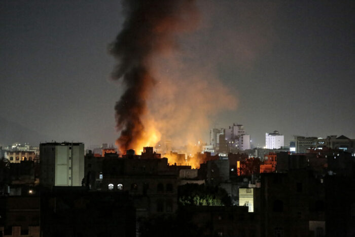 AFP Des panaches de fumée s’élèvent au-dessus des bâtiments après le bombardement de Sanaa, la capitale du Yémen contrôlée par les Houthis, le 19 mars 2025. (Photo AFP)