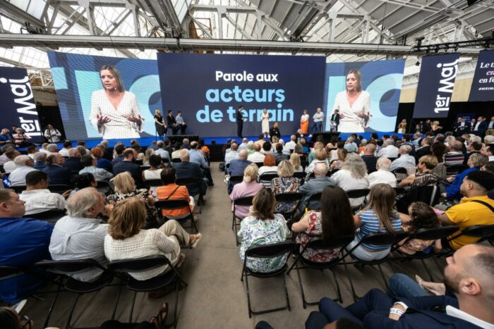 Les libéraux francophones boivent les paroles d’un responsable politique français qui tient le même discours qu’eux et qui fait honneur à une ville wallonne. Même si le discours est de circonstance et préparé, les militants du MR jubilent et sont sous le charme. « Je crois au travail et je le dis d’autant plus fortement ici à Charleroi. Dans cette ville, on sait ce que le mot travail veut dire. Dans cette ville de Charleroi qui a connu les heures de gloire de l’industrie. Cette ville de Charleroi qui n’a pas oublié ses mineurs tombés au bois du Cazier, cette ville qui a connu l’angoisse de la désindustrialisation. Et aujourd’hui, cette ville qui regarde devant, cette ville où l’industrie renaît, l’innovation avance et l’avenir s’écrit. A Charleroi, on connaît le sens du mot travail et on veut le remettre à sa juste place, c’est-à-dire tout en haut des priorités, au sommet de tout. En ce 1er mai, nous célébrons le travail, nous célébrons le goût de l’effort, la volonté d’offrir un travail de qualité à tous. Nous célébrons les travailleuses, les travailleurs qui sont au centre de tout et que nous ne devons jamais oublier ; ces travailleurs, ces femmes et ces hommes de la classe moyenne qui sont le ciment de notre société », poursuit-il sous les applaudissements.