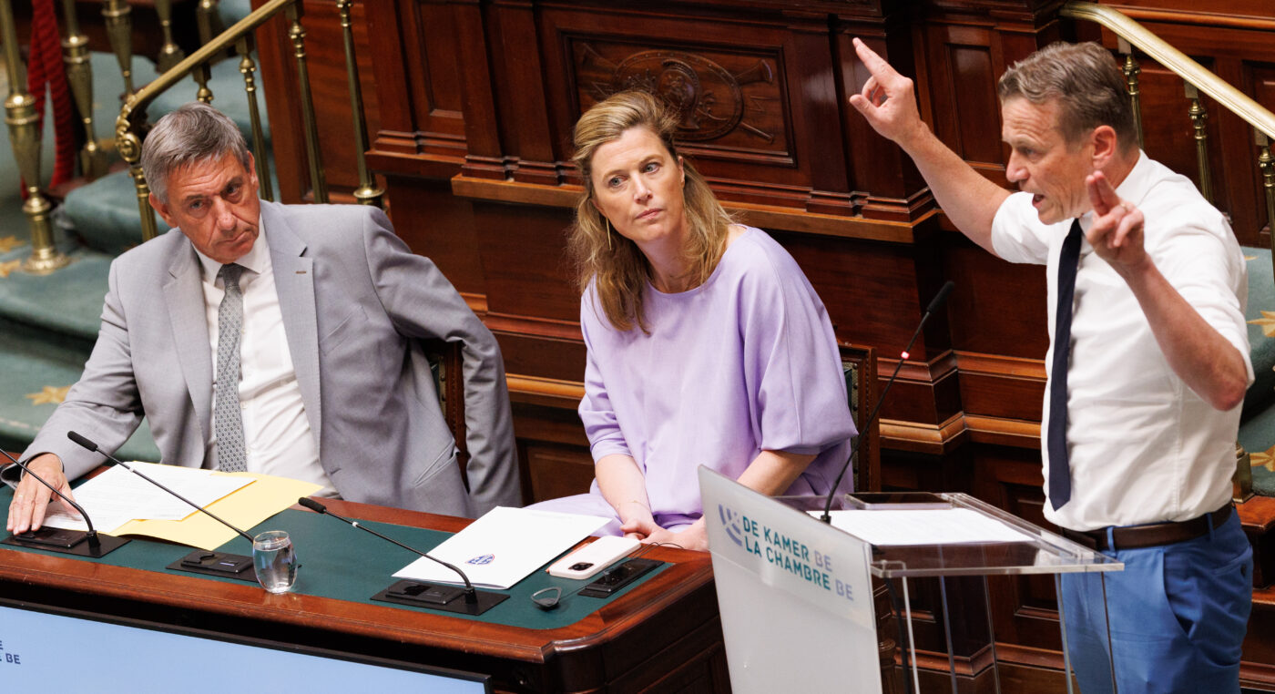 Le vice-premier et notamment ministre des Finances et des Pensions Jan Jambon (N-VA) ainsi que la ministre de la Justice Annelies Verlinden (CD&V) écoutent une interpellation du Paul Van Tigchelt (Open VLD) lors d’une séance plénière de la Chambre à Bruxelles, le mercredi 30 avril 2025. BELGA Les magistrats et le personnel de justice du district judiciaire d’Anvers et du Limbourg cesseront le travail ce jeudi 8 mai à 9h de façon symbolique pour protester contre les mesures du Gouvernement Arizona, notamment le rabotage de leur pension. Mais ils entendent aussi dénoncer la situation chaotique dans laquelle se trouve la justice : sous-financement, manque de personnel, infrastructures délabrées, problème de sécurité, surcharge de travail, difficulté d’accès à l’aide juridictionnelle pour les justiciables, etc. Ils redoutent les conséquences de la situation, notamment le manque d’attractivité de la profession et les démissions. Par ailleurs, après Liège, Namur, et Bruxelles, c’est l’auditorat du travail du Hainaut qui sollicite le report des audiences non-urgentes devant les tribunaux correctionnels et de police depuis le 30 avril La situation semble s’acheminer vers une rupture entre le pouvoir exécutif et le judiciaire.