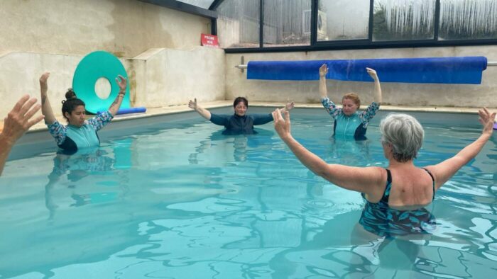 La décharge articulaire en milieu aquatique réduit les inconforts, tandis que la conscience corporelle sophrologique aide à ajuster les postures et à relâcher les zones tendues.