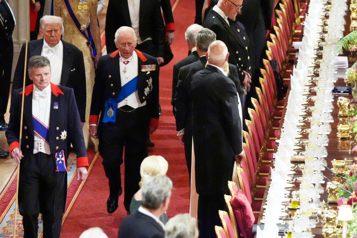 Un défilé aérien inédit, combinant des F35 britanniques et américains et la patrouille acrobatique des « Red Arrows », précède le banquet royal réunissant quelque 150 invités. Charles et Camilla offrent au président le drapeau britannique qui flottait au-dessus du palais de Buckingham le jour de son investiture. Les Trump, en retour, offrent une réplique de l’épée du président Eisenhower, symbole du partenariat historique forgé pendant la Seconde Guerre mondiale.