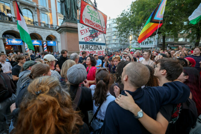Sur les pancartes, on peut y lire d’autres messages tout aussi explicites : ils traduisent la colère des manifestants dont la plupart sont des jeunes. « Solidarité avec le peuple palestinien », « MR, complice de génocide », etc.