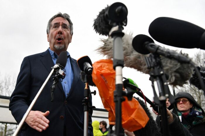 Le militant John Rees, à l'origine de la conférence de Paris, photographié lors d'une action en faveur de Julian Assange à Londres. BELGA/AFP Le militant John Rees, à l’origine de la conférence de Paris, photographié lors d’une action en faveur de Julian Assange à Londres. (Ben STANSALL / AFP).