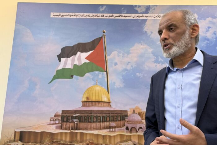 Hossam Badran, membre du bureau politique du Hamas, s’exprime lors d’un entretien avec l’AFP à Doha, le 11 octobre 2025. M. Badran a prédit des négociations difficiles, suggérant que la question clé du désarmement pourrait constituer un point de friction pour le groupe militant palestinien. (Rania SANJAR / AFP).