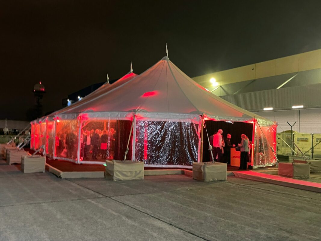 La fête des 40 ans de DHL s'est déroulée sous un chapiteau de cirque chez le logisticien aérien. Crédit : Caroline Vanbossel.
