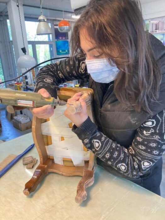 Ysaline, minutieuse et ordonnée, chine, scrute, récupère, rénove des abat-jours, met en conformité l’électricité des lampes, en les nettoyant et les restaurant. C’est sa passion, son hobby qu’elle développe pendant son temps libre après un bachelier en stylisme et un master en Tricot-Design décroché à la Haute Ecole Francisco Ferrer de Bruxelles.