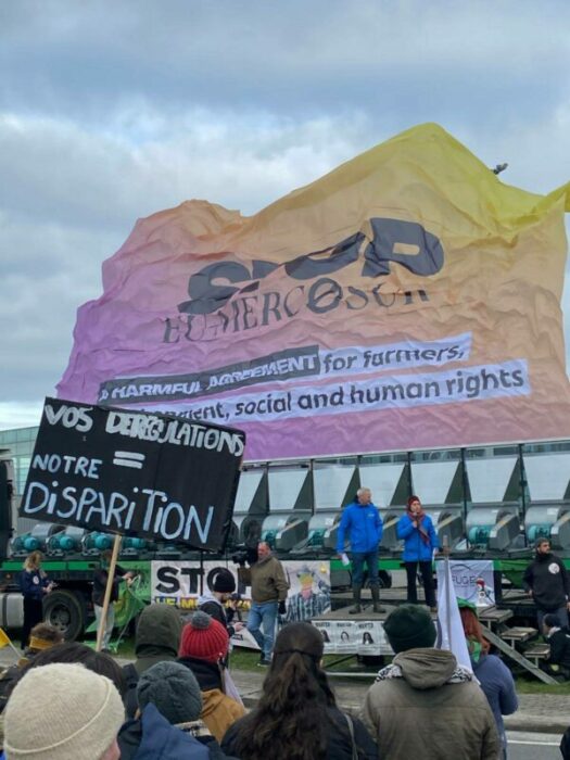 « Ce traité est le symbole d’une politique commerciale injuste et dangereuse. Dans cet accord anachronique, nos agriculteurs et agricultrices sont mis en concurrence, face à des modèles qui ne respectent pas nos normes sociales, environnementales et sanitaires. Cette concurrence déloyale fragilise nos fermes et notre capacité à produire une alimentation locale, remplacée par des importations », martèle le mouvement collectif.
