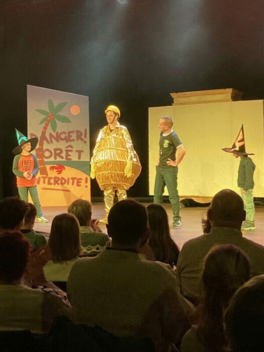 Le public est régulièrement impliqué dans le déroulement de la pièce, ce qui renforce la proximité avec les acteurs et contribue à créer une ambiance chaleureuse et dynamique.