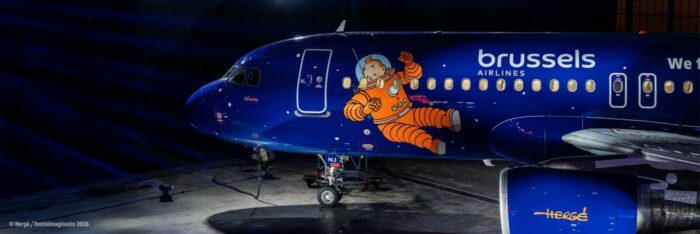 Après son Airbus A320, baptisé dès 2025, « Rackham », un appareil déguisé en célèbre sous-marin requin de l’album de Tintin « Le Trésor de Rackham le Rouge », Brussels Airlines continue de rendre hommage à l’un des personnages de bande dessinée belges les plus appréciés en dévoilant sa nouvelle Belgian Icon pour 2026 : Gravity, un appareil arborant une livrée magnifique dédiée à Tintin, un nouveau design s’inspirant de la célèbre fusée rouge et blanche de l’album « On a marché sur la Lune » . Un design unique toujours inspiré des Aventures de Tintin, un véritable ambassadeur de notre patrie et réalisé en collaboration avec Tintinimaginatio. Une création nouvelle qui célèbre pour la deuxième fois consécutive l’un des héros de bande dessinée, créé par Hergé, l'un des personnages les plus emblématiques et appréciés.