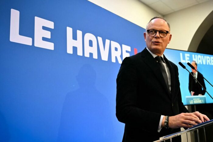 Le maire sortant du Havre et candidat du parti Horizons (centre-droit) à sa réélection, Édouard Philippe, arrive pour s’exprimer après l’annonce des résultats du premier tour des élections municipales françaises de 2026 au Havre, dans le nord-est de la France, le 15 mars 2026. (Lou BENOIST / AFP).