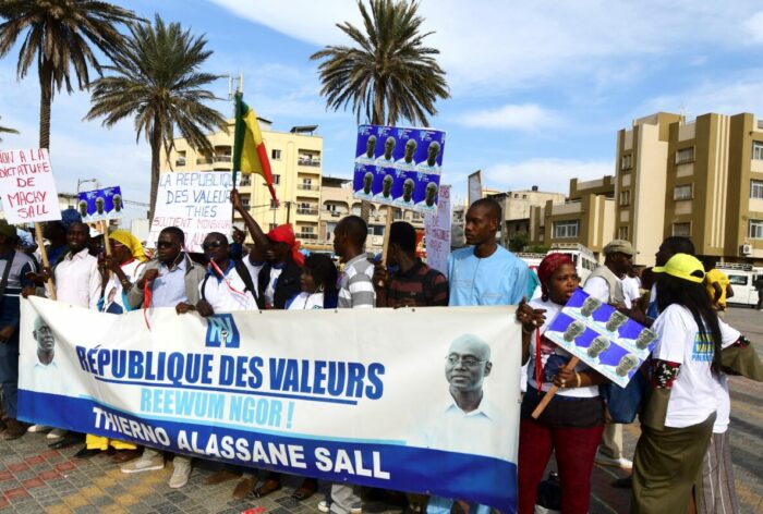 AFPLes supporter de l’ancien mùinistre de l’Energie, Thierno Alassane Sall. (Photo by SEYLLOU / AFP).
